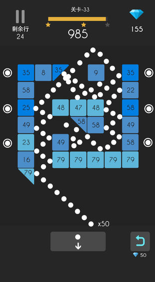 这款手机游戏规则非常简单明了,让大家在游戏中不断迎接新的挑战。每次发射小球时,我们都需要仔细瞄准角度,这样才能成功击碎那些砖块。游戏设置了大量的关卡,每个关卡都有限定时间,所以大家可以反复尝试,直到过关。重要的是,新手玩家也可以快速掌握,此外,游戏还提供了多种弹球样式供我们选择,让我们在游玩过程中不断感受到新鲜感。