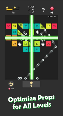这款游戏巧妙灵活的结合了众多经典游戏元素,在游戏中,我们需要精心计算每个发射角度,因为每个方块障碍物上都标有不同的点数。想要消除这些方块上的数字,就需要大家不断尝试,让小球在它们之间反复跳跃。游戏挑战永无止境,我们的记录会自动保存,风格也会不断更新,让大家随时随地都能享受游戏的乐趣。小球射击是随机的,但大家要注意它的运动轨迹,这样才能更好地掌控游戏。