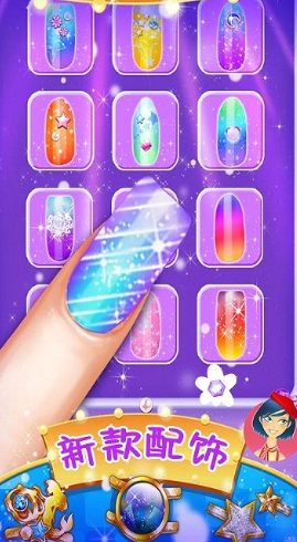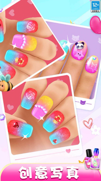 这里有很多颜色的美甲材料,还有一堆装饰小货架闪闪,亮亮的水钻和萌萌的贴纸,大家想怎么搭配,可以完全按照自己的喜好来,轻松地做出只属于自己的美甲样式。操作的特别简单,点几下屏幕,各种创意设计就完成了,不管大家喜欢公主范儿,还是喜欢酷酷的朋克风,在这款游戏里都可以满足大家,适合特别爱动手追求独特风格的年轻朋友们。