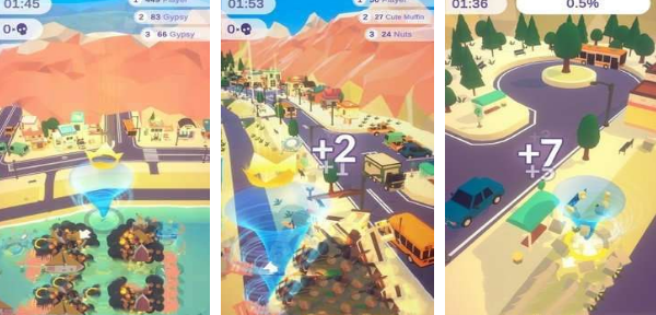 本作是一款以龙卷风为核心机制的模拟吞噬类游戏。玩家将扮演初生的风暴,通过不断吸收环境中的小型旋风来增强自身。随着体积与强度的增长,你能够摧毁沿途的一切建筑与障碍物。游戏中采用实时在线对战模式,不同玩家操控的龙卷风会在地图中相遇,弱小的一方会被强大的对手直接吞噬,玩法类似经典贪吃蛇,但更具动态对抗性。轻松的操作节奏使其成为缓解压力的理想选择。