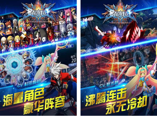 采用2d极致日系画风所打造的动作类型,除了感受苍翼格斗经典游戏的特色,也能感受爽快的指尖战斗,有苍翼系列人气超高的各种角色,无论你喜欢哪一个,都能利用点滑式无限连击以及突破传统操作的模式,加入到无限制痛快的战斗当中。多个英雄角色风格各异,你都可以进行选择,还有超多日本一线声优献声。