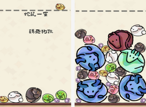 本作采用经典下落式合成玩法,十二种生肖形象会从屏幕上方持续掉落。玩家可通过左右滑动调整落点位置,当相同生肖相邻时可进行合并,触发连锁反应并获得更高分数。策略性布局和即时反应成为取胜关键,整体节奏轻快,视觉反馈生动,带来持续不断的消除乐趣。