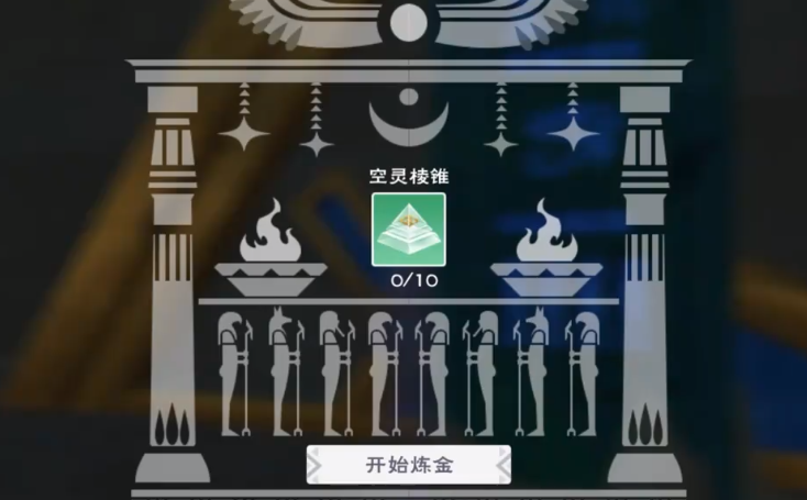 其实翠玉录也可以说是游戏里面设定的炼金玩法,每一个角色都可以消耗十个空灵棱锥获得一次炼金过程,炼金开始之后,系统会随机亮起五个图标,这五个图标就代表了玩家的炼金结果,在每一个图标下面还会有三个三角标识,如果三个三角都点亮就代表真理,如果有三个相邻的图案分别点亮了一颗星,那就代表法则,了解了规则之后,就能知道如何才能获得奖励。
