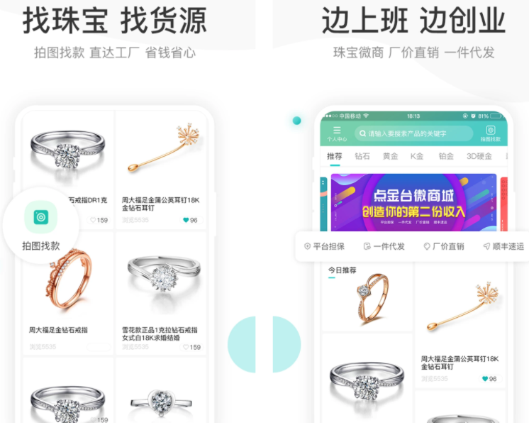 大型的珠宝黄金行业平台,云集大型珠宝的名企,还支持拍图找同款,直达工厂货源,找足金首饰很方便。快来下载软件省钱省心买黄金的饰品吧!