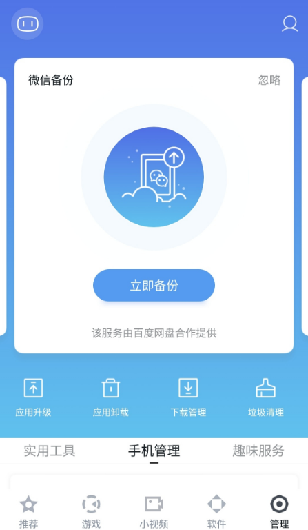 同样作为一款手机管理app,该软件依然为用户们提供了有效的手机管理,内部的应用市场也可以第一时间获取到最新的软件。还想要获得更丰富的应用体验,用户们只需要点击下载即可。