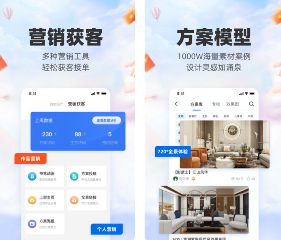 软件当中收录了上千万的方案模型,包含了各种流行的设计风格,什么样子的装修效果图,你都能快速找到,通过观察大量现成的案例,还能激发出更多的创造灵感。平台中聚集了许多有思想,有创意的设计师,他们会和你分享行业资讯,以及自己的想法。