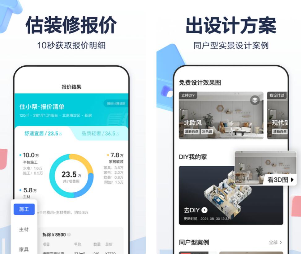 在进行家装前,用户可以按照自己的想法,让设计师为你出一套方案,并附带一份报价,要是你觉得不满意,那么还可以随时进行调整,直到符合你的要求。软件内还开辟一个装修锦囊区域,其中包含了各种攻略,你在选购建材或家具家电前,可以从里面找一些专业建议。