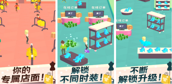 操作简单易懂,通过点击与拖动即可完成地图探索,适合各年龄层玩家快速上手。初始店铺规模较小,品类有限,但随着订单任务的逐步完成,可不断扩展店面区域,解锁更多服装类型。支持个性化搭配与定制设计,让玩家在经营过程中享受创意搭配的乐趣,构建属于自己的时尚空间。