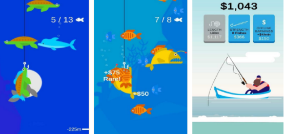 有趣的休闲手游整体玩法超级简单,而且也足够经典,采用卡通风格,不过将钓鱼的激情以及神秘的海洋世界展现得非常别致,五彩斑斓的鱼儿,在超大的海洋当中任意游走,每当鱼群到来快速抛竿,一次性钓到6只就能够获得丰厚的奖励,在规定的时间内钓到数量更多的鱼儿玩家就能成功获胜,具有极强的竞技性。