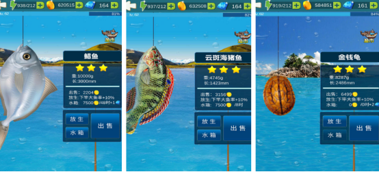 以卡通风为特色的钓鱼手游,有酣畅淋漓的操作手感,有趣的竞争方式,成为无数爱好者热衷于选择的特色类型,钓到稀有度极高的鱼类可直接放到水族箱当中饲养展示,也可通过售卖的方式获得更多的金币,这样能够定制渔具装备,让你的钓鱼技能变得更加出色,更加强大。