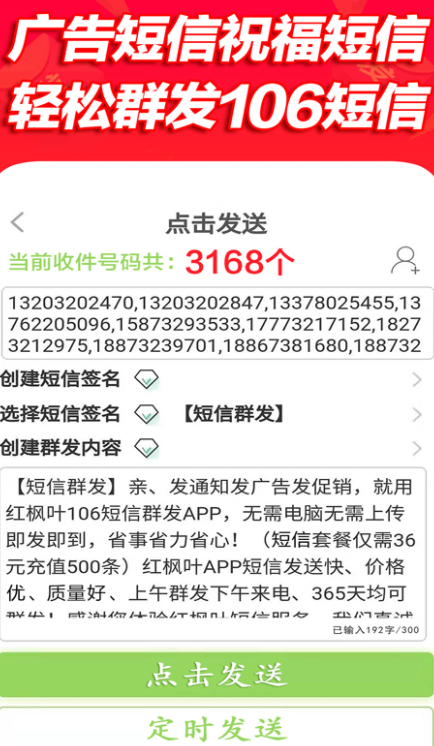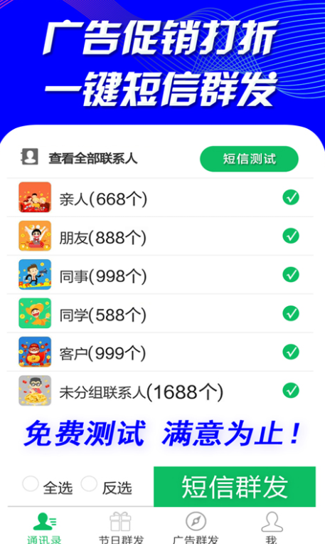 这款群发软件的功能是很强大的,不仅有基础的短信群发功能,还可以在软件中来寻找一些附近的人,也可以直接选择群发的。群发的内容可以文字,也可以是一些名片或者说文章等等。