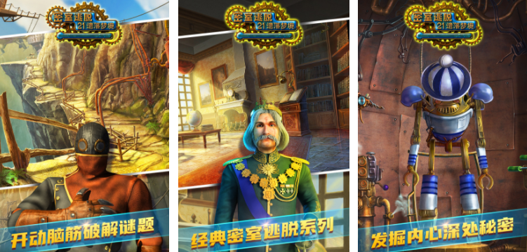 在密室逃脱的第21部作品里,玩家将会来到一个非常奇特的梦境,在梦境里面记忆会有蒸汽朋克风格的城市,也会有大量带有魔法属性的森林,玩家需要分别在这些场景里,通过开动脑筋以及场景里的各种线索,寻找答案并,并且挖掘内心深处的秘密,挑战过程中会进入到大量的场景,每一个的场景设定都是非常立体的,可以在这个3d立体的场景中,通过不断动脑,完成各种解谜冒险。