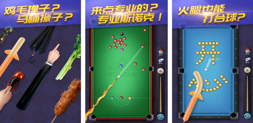 在天天台球这个游戏里,打破传统的设定,会设定充满趣味性的花式击球挑战,在打球的过程中,除了可以选择球杆,还可以选择各种物品,球杆不同能带给玩家的击球乐趣也不一样,不管是喜欢专业斯诺克对战,还是喜欢趣味击球的玩家,都不要错过这个游戏,是最能缓解压力的一个趣味台球游戏。
