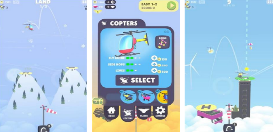 60多个不同的挑战关卡,还有10多种炫酷的直升机都随意挑选,每种直升机的特征以及操作方式有较大的差距。主要的任务就是操控自己喜欢的直升机,从停机坪到另外的停机坪上,在操控过程中,可能会出现很多突发的情况,比如天气的变化等等,则巧妙地展现出滑动或跳跃的动作,提高成功率。