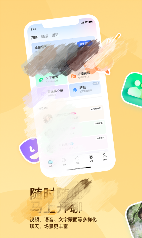 作为一款老牌的社交软件,在这款软件中小伙伴们可以通过填写个人标签来让系统智能匹配,软件中小伙伴们可以通过广场区块来进入语音房间,在房间中小伙伴们可以畅所欲言结交志同道合的朋友。