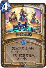 在对阵慢速卡组时,主要是利用战斗号角加buff体系一波铺死对面,如果被解掉了,还可以用开赛集结再次返场,另外神恩术也可以为我们弥补大量的手牌。