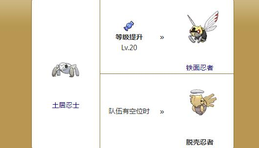 HP只有一在游戏中可以说是最特殊的存在了,首先玩家需要先拥有一只土居忍士,得到的方式也不难,只要前往丰缘116号道路的草丛里进行捕捉就可以了,当玩家捕捉到其时就可以选择将土居忍士升级进化成为脱壳忍者了,但是必须满足拥有一个普通球和一格空余的精灵位才行哦。