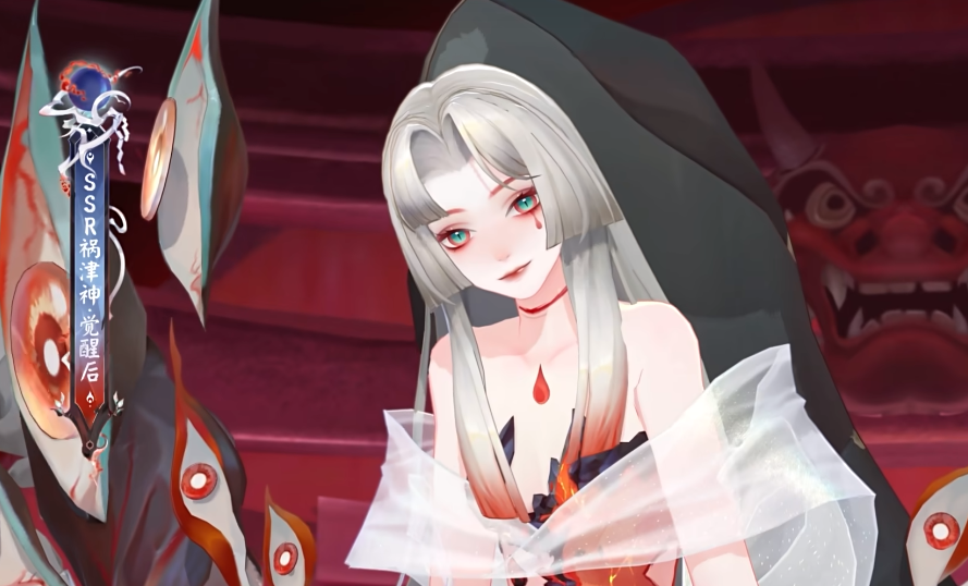 因为这个游戏比较偏向于二次元风格,所以游戏里的角色也都采用了这种风格作为主要的设定,祸津神在游戏里的形象非常亮眼,角色会留着白色的短发,身上穿的服装也都是白色,角色会被红色的丝线束缚住,面部的蓝色色调会让这个颜色看起来非常颓废,在觉醒之后人物会变成通体红色的形象,而且身后会有很多像孔雀羽毛的眼睛造型。