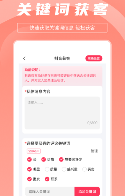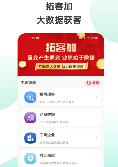 想要成为拓客达人吗?想要成为销冠吗?这款软件精准扩充人脉,助力你成为销售冠军。通过关键词搜索客源,并根据信息进行搜索筛选,挖掘高质量客户。这款app轻松打破传统的顾客方式,解放小伙伴的双手,保证准确率以及接通率。当前各行各业都在使用,包括销售、业务员、生产厂家、渠道商等等。