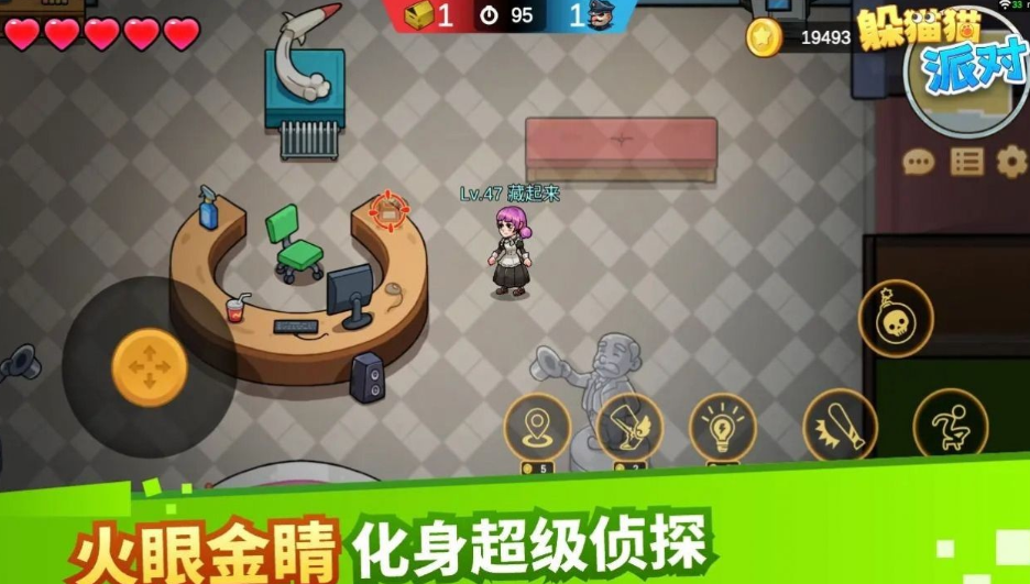 不要看这款游戏是2d画面,可它却给玩家带来了别具一格的游戏感受。其多人在线对抗玩法更是极具辨识度,每局开局时,玩家都会被分配至两个不同的阵营,搜寻者以及躲藏者。这两种不同的身份也背负着不同的任务,必须要全力以赴去完成各自的任务。在对局的过程中,玩家可以依靠各种技巧来最大化的隐藏自身位置。这款游戏还为大家准备了品类比较丰富的主题地图,能随时切换游玩场景。