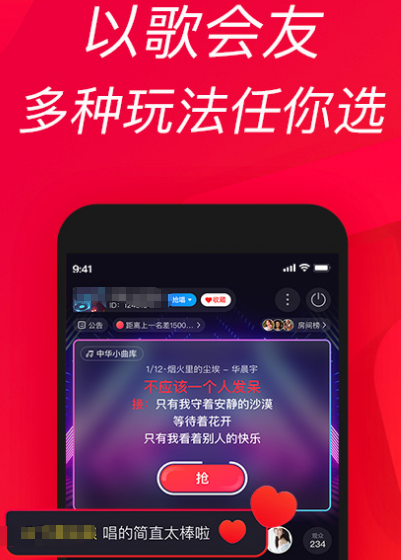 下载这款app,享受k歌沉浸式体验的同时还能遇到志同道合的好友,共同交友,牵手组cp。有抢唱接唱,在线k歌边唱边聊等多种玩法。