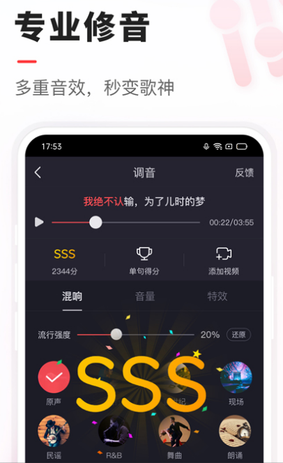 简单易用的k歌app,上下滑动歌词就可重复唱每一句,海量精彩活动,让你嗨不停。有歌曲评分,伴奏曲库等多种模式,全新智能评分系统,越唱音越准。