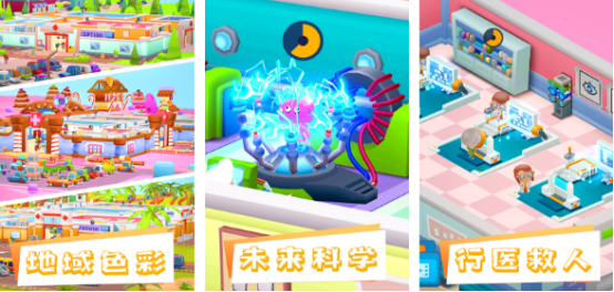 有独特的病人模拟模式,从小喜欢学医,成年之后打造属于你的医院,从最初的小诊所建立整个医疗帝国,经历众多艰难过程,最终成为医疗大亨。通过不断学习各种技术手段,治愈众多病人,将遇到形形色色不同性格以及不同疾病的病人,玩家要有足够耐心及信心,这样才能够快速救治。有非常精美的画面展现出地域色彩,在卡通氛围下行医救人。