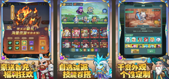 融合策略布阵与挂机放置双核心机制,以九宫格战场为战术决策基底。玩家需依据前排抗压、后排输出/治疗的职能分工,合理部署英雄站位;内置自动战斗、倍速播放、离线收益继承等功能,大幅降低操作门槛与时间成本。资源获取与角色养成呈线性叠加,支持长期积累型成长规划,兼顾新手友好性与中后期策略纵深。