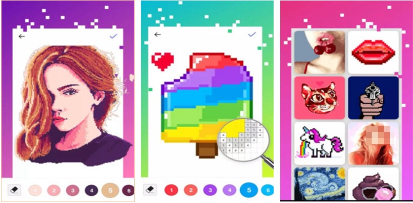 本作是款充满魅力的模拟绘画类涂色游戏,涂色主题的新奇玩法配以像素的背景代入感绝佳,每个像素小方块上都标注着特殊的数字,你的任务就是点击数字然后选择相对应的颜色进行填充,极为新奇的游戏模式配以填色玩法乐趣十足,各类像素风格的模板加持也为这款填色手游润色不少,颜控党与像素游戏爱好者也可试试这款填色神作。