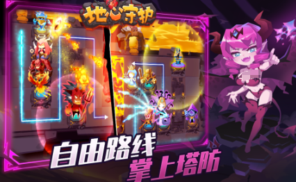 游戏以塔防玩法为主,你需要自己去设计迷宫路线,让敌人多绕路。在游戏中你就成为了恶魔王子,需要守护地心,利用元素力去保护好恶魔的心脏。游戏有7种元素敌人会过来抢宝藏,你就需要利用这些元素炮塔去抵挡他们的进攻。这些元素炮塔可以融合出更强的,并且还有一些肉鸽随机机制,打不过的话就可以重新的更换。这款游戏将肉鸽结合塔防类的玩法还是很新颖的,另外还有竞速模式。