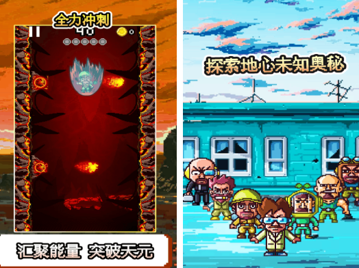 在这一个游戏中,你就成为一名科研者,需要来到地心的深处去闯荡。你会看到会有很多的怪物,甚至还会有火山等不同的地方,主要的玩法就是躲开障碍物,然后打败怪物。还有好几种的挑战模式可以解锁,到了后期你还可以解锁一些新的角色。整个游戏的代入感还是很强的,这一路探索的刺激感更是停不下来。