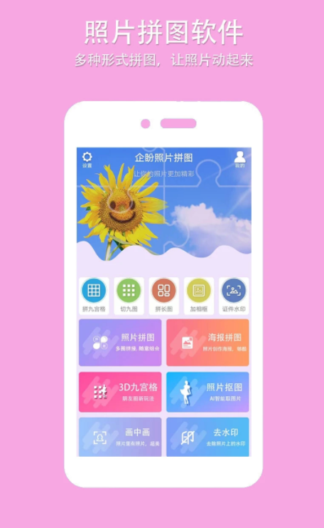 专注于多图组合排版,提供多种布局样式和风格选项,帮助用户将多张照片有序拼接成富有设计感的作品。支持自定义背景、滤镜叠加和贴纸装饰,让拼图更具个性化表达,特别适用于旅行回顾、聚会留念等生活场景。