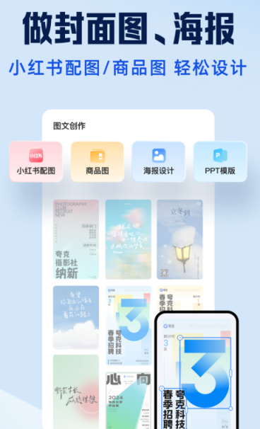 这款应用不仅支持高精度的文字扫描与识别,还集成了丰富的设计资源,便于媒体从业者快速制作封面、宣传海报以及个性化的PPT演示文稿。其内置大量模板资源,广泛应用于商业图文设计领域,是移动办公中高效的辅助工具。