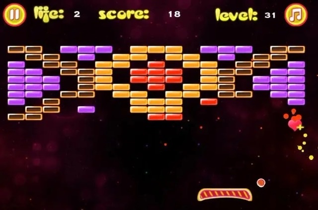 它用板子运动反弹小球打碎砖块,给人一种畅快的感觉,游戏在玩法特色与优点上都是相当多的,其操作很简单,只要用手指在板子上滑动一下即可控制小球走向,十分方便。游戏内砖块形态各异,每一块砖块分数不一,让你在打碎砖块时获得不一样的挑战与快感。在游戏中设置多种道具,像加大板子长度和加速小球,这样就可以更加容易获得高分。