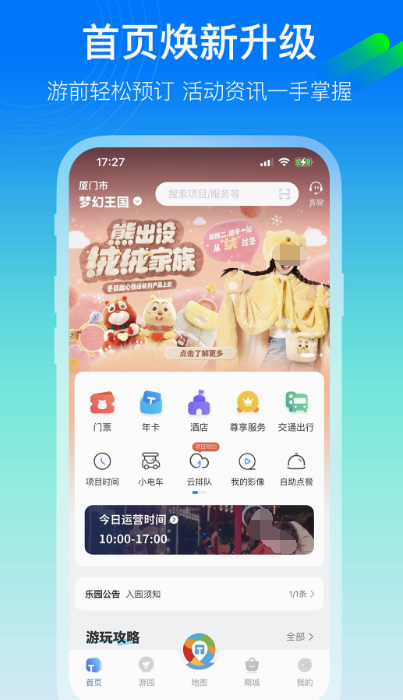 专为前往方特主题乐园游玩的游客设计,这款app集成了园区营业时间查询、餐饮预约、酒店预订等多项实用功能。无论是参团游览还是自驾出行,都能在这里找到所需的服务支持。内置高清地图导航、停车缴费等便捷功能,让整个游园过程更加顺畅高效,全面提升游玩体验。