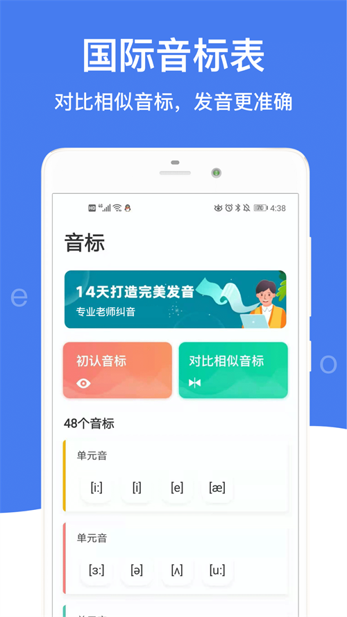 专注于音标教学的应用,提供完整的国际音标体系讲解,涵盖元音、辅音及连读规则等内容。用户可通过对比相似发音进行针对性训练,纠正口型与语调偏差。同时,软件内集成常见语法知识点,便于同步巩固基础知识,让英语学习更加系统化。