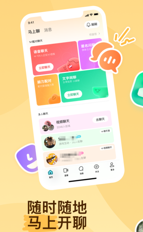 目前有4亿用户在该软件上社交,真实可靠,即使与对方没有互加好友也能畅聊。通过智能推荐找到与自己有同样兴趣爱好的人群,到语音房中多人畅聊更欢乐。