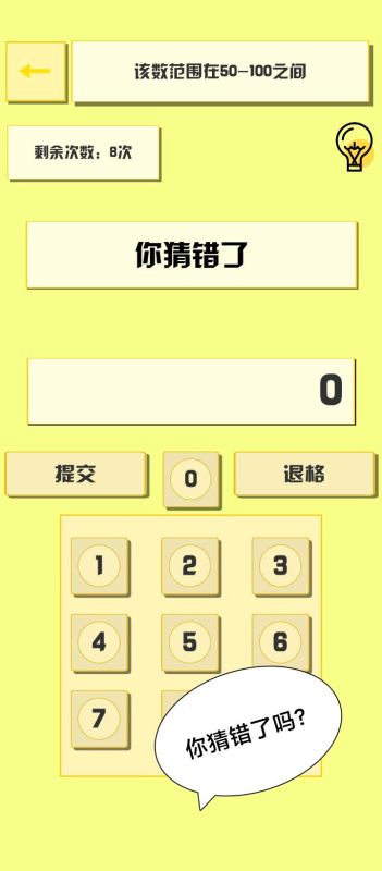 《猜数狂魔》游戏设计的三大模式,都针对数字范围进行了不断延伸的设计,玩家要从一到万之间的数值进行猜测,每一次出题都会随机的提供猜测范围,玩家需要从首次的试探,到不断的对数值范围的缩小,去接近猜测出正确的数字,全程都运用了限次数的设定,游戏又在界面中加入了退格、填写等功能,让大家在猜测中又能感受一种手动参与的互动感。