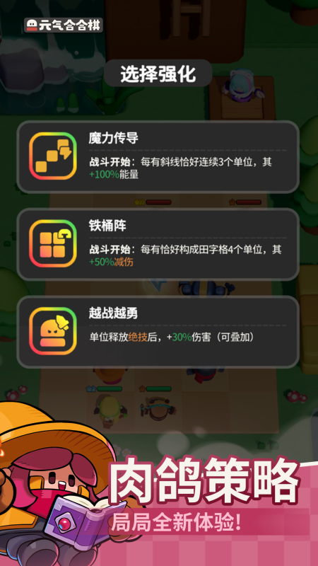 《元气合合棋》凉屋旗下继续围绕着标志性的元气ip,开创的一款更为别致新奇的自走棋手游,添加了各种活力满满的元气伙伴,游戏中你尽管去毫无保留的,把你黑科技的战术展现出来,在这个光彩四溢的棋盘之中,趣味悠长的的乱斗交战,游戏还运用了更为诙谐玩具风格,对角色进行了灵动的设计。