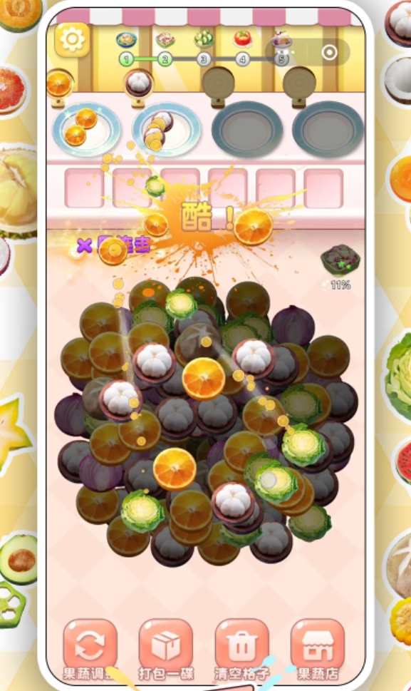 通过将相同的食材放到一起,就能令它们完成碰撞并消除,是这款《轻食对对碰》为各位带来的极致享受,但要注意这些食材都是堆叠起来的,只要将上层的食材取走后,下层的食材才能被玩家们选定,也令食材的选取顺序十分有讲究。将所有食材通过对对碰的形式完成消除后,各位不光能在挑战中顺利地达成过关的要求,还能收集到非常多的轻食图鉴,让自己的果蔬店能展示更多精致的美味轻食。