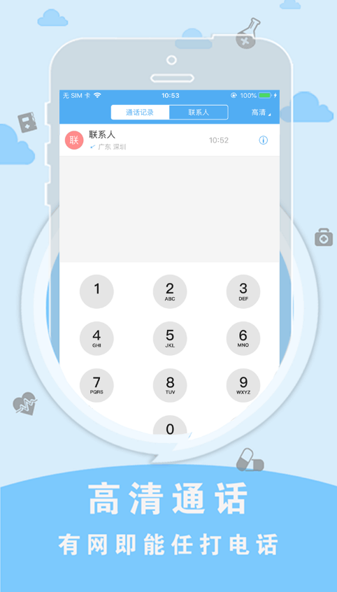 有网络条件下,可进行通话,还可进行全球电话,无需对方安装该软件,也可进行高质量通话。可快速注册安装,操作简单方便,使用时可以隐藏电话号码,保留用户隐私信息。