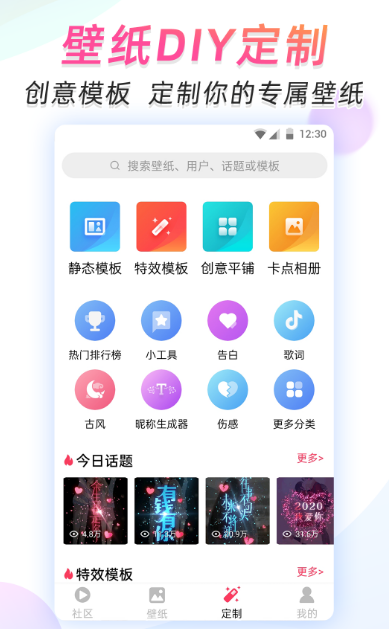 创新性地将短视频融入手机桌面,实现真正意义上的动态显示。应用体积轻巧,不占用过多存储空间,启动后即可呈现炫酷视频画面。内置短视频社区,用户可自由选取喜欢的片段设为壁纸。同时提供多种创意模式,如特效模板、平铺设计、卡点相册,并集成昵称生成器、告白语录等实用小工具,助力个性化创作。