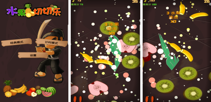 水果忍者是一个让玩家体验起来非常上瘾的切水果游戏,游戏里每个玩家都能获得一把刀,需要通过滑动屏幕,这样可以挥动这把刀去切开游戏里出现的水果,每次切开水果都能获得分数,通过连接更是能得到额外的分数,每一关都会限定时间,还会有很多炸弹干扰,要尽可能在短时间内切开更多的水果,这样才能让玩家在榜上有名。