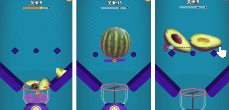 单机切水果是一个需要玩家把水果切成碎片的游戏,进入到游戏之后,会有大量的关卡,每一个关卡里都会给出不同的水果,在水果的下方放置着榨汁机,玩家需要在游戏里,通过简单的切割让水果可以顺利掉落下去,每一个都会有多次切割机会,但切割的次数越少,玩家能获得的星级也就越多,可以在游戏里尝试一下,体验不同的切水果玩法。