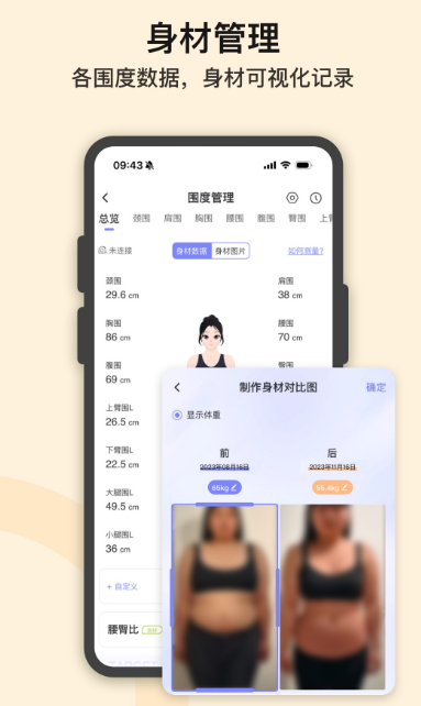 集体重监测、饮食建议与健康管理于一体的综合性平台。连接体脂秤后可自动同步每日体重变化,并基于数据分析推送合理的饮食与锻炼计划。界面经过全面优化,操作更直观,功能布局清晰。除体重管理外,还支持接入颈肩按摩仪、心率血压检测设备,提供全方位的身体健康报告,满足多样化健康需求。