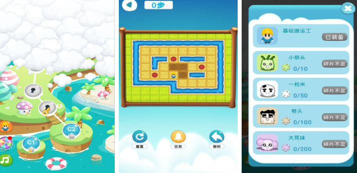 推箱子智力闯关就是经典的解谜游戏,场景里有箱子和要放箱子的点位,操控角色把所有箱子都推到对应点位就算过,刚开始关卡简单,越往后场景越复杂,箱子变多还会有墙壁、障碍物挡着,有时候得先推这个箱子让路再推那个,顺序错了就卡关。
