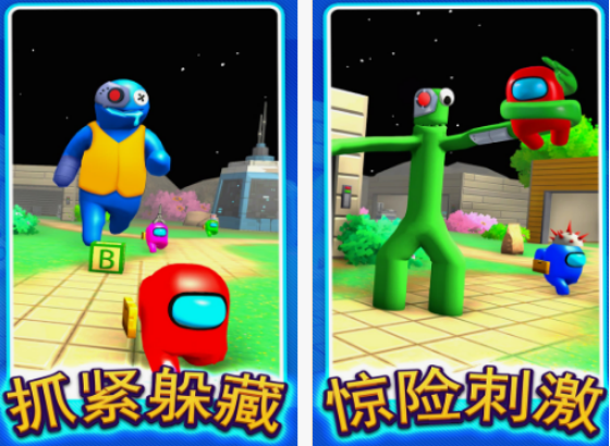以现实生活中很多的孩子,都比较感兴趣的躲猫猫玩法为主,只不过采用的是特别简约的风格进行设计,依旧会将玩家分成两个阵营的,无论你是属于伪装者或者是船员的话,都有着不一样的任务,支持4~15个玩家共同的开启。比如在伪装者这个阵营的话,就需要躲避船员,这样才能完成躲避的任务,而船员的话,要在丰富的场景当中,及时的将伪装者找到。