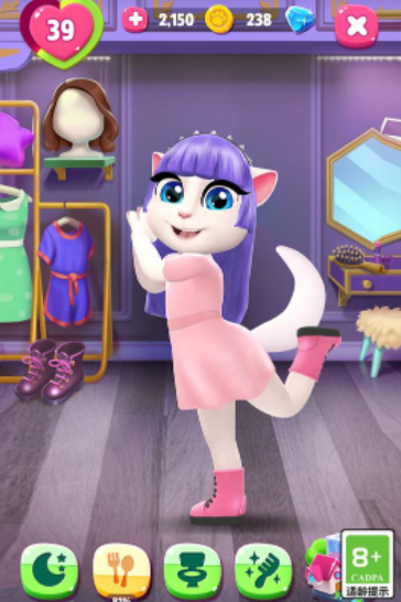 这款游戏让大家拥有一只美丽的小母猫——安吉拉。游戏促使你实现无需花钱无需铲屎就可以养宠的心愿。游戏中你说一句话,小母猫就会立刻重复说一遍,十分的具有灵性,而且其说话的语气非常搞怪,能博得你的笑颜。游戏设计了许多可爱的小衣服、小裙子,你可以给小母猫换上,让它成为最美丽的猫。