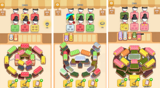 五彩缤纷,看上去非常美味的寿司,等待你来点击并自由消除,通过滑动屏幕即可快速交换寿司的具体位置,并不需要任何复杂的操作,游戏有较为丰富的场景细节,食材蒸汽以及樱花飘落等动态效果都展现得很别致,提供海量精心设计关卡,特定寿司任务及模式等你挑战游戏会不定期持续更新,确保有新鲜感。