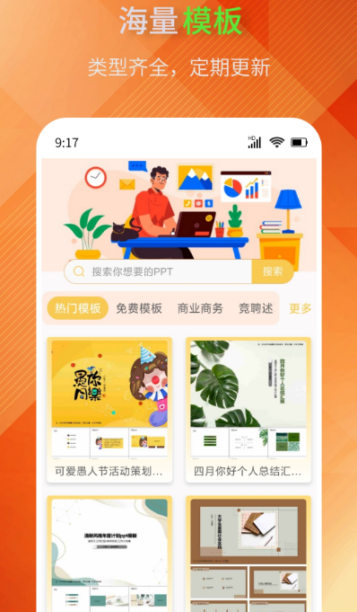 这款应用提供大量可在线预览并免费下载的PPT模板资源,涵盖多种风格与用途,如教学课件、项目汇报、产品发布等。界面简洁清晰,支持关键词快速检索,满足不同用户的个性化需求。所有模板均由专业设计师精心打造,兼具美观性与实用性,同时平台持续更新内容,确保资源紧跟潮流趋势,助力用户轻松提升工作效率。